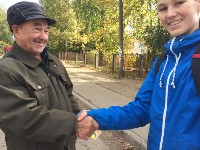 С поздравительными открытками ученики 5-х классов вышли на улицы микрорайона Давыдовский и поздравили бабушек и дедушек с праздником.