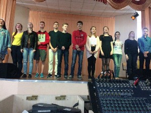 В осенние каникулы с 30.10 по 03.11 на базе гимназии работал лагерь с дневным пребыванием «Нескучалия». Первый день - открытие. на сцене - вожатые. |