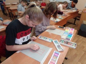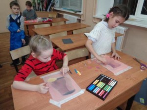 25 января К нам в гости, на изостудию, снова пришёл костромской художник Кашин Е.И. На этот раз он учил нас рисовать пастелью. Собралась большая группа юных художников, пришли учащиеся с 1 по 10 класс. Мы попросили Евгения Ивановича приходить к нам ещё.